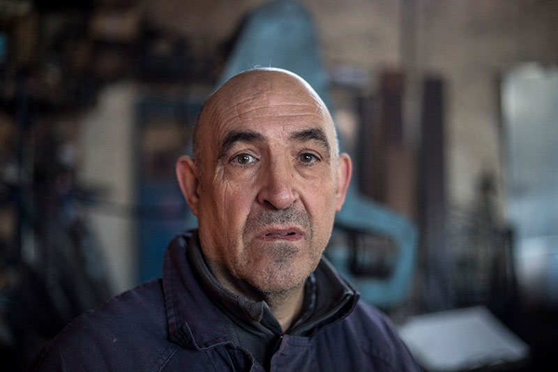 El herrero del pueblo, que ama su profesión, pertenece a una saga que lleva en la profesión desde 1842. Antiguo alcalde, no oculta su preocupación por el futuro de los pueblos.